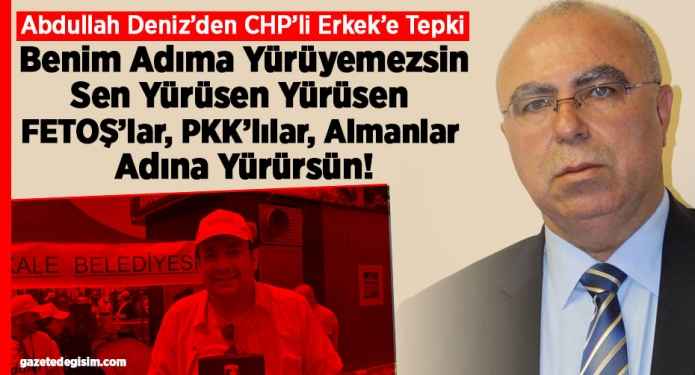 Çanakkale Ticaret Borsası Meclis Başkanı Abdullah Deniz, CHP’nin sözde Adalet Yürüyüşüne tepki gösterdi. CHP Çanakkale Milletvekili Muharrem Erkek’in geçtiğimiz gün katıldığı bir televizyon programında “seksen milyon için yürüyoruz” sözlerine tepki gösteren Deniz; ˮBenim şahsım ve Deniz ailesi adına sen yürüyemezsin sen yürüsen yürüsen FETOŞLAR, PKK’lılar, Almanlar adına yürürsün. Sen benim için yürüseydin 15 Temmuz da devletimin uçaklarıyla üstümüze bomba atan şerefsizlere tepkini, Çanakkale iskele meydanında halkım tepkisini koyarken sabahlara kadar nöbet tutarken şahsınız adalet için yürüyordunuz galiba” diyerek Erkek’e sert şekilde tepki gösterdi.