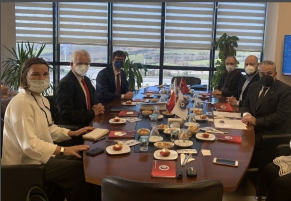 Almanya Federal Cumhuriyeti İstanbul Başkonsolosu Johannes Regenbrecht ise; “Türkçe bilen bir personelimiz ile hibrit, Türkçe dilinde bir webinar organize ederek üyelerinize taleplerini, sıkıntılarını, merak ettiklerini, vize ile ilgili meseleleri dile getirecekleri bir etkinlik yapabiliriz. İşbirliğimiz için bir sonraki adım, en kısa zamanda bu etkinliği gerçekleştirmek olabilir. Ben bu bölgede özellikle rüzgar enerjisi anlamında çok yüksek bir yatırım potansiyeli görüyorum. Alman Hükümeti enerji dönüşümü yaşıyor. Konsolosluğumuz yılda 160.000 vize veriyor. Adeta bir vize fabrikası gibiyiz. Vize prosedürlerine kolaylık getirilmesi bizim yükümüzü de önemli oranda hafifletecektir. Misafirperverliğiniz için heyetim adına teşekkür ediyorum” diye konuştu. Ziyaret günün anısına karşılıklı hediyelerin verilmesi ve toplu fotoğraf çekimi ile sona erdi.