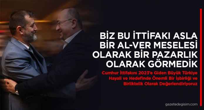 BİZ BU İTTİFAKI ASLA BİR AL-VER MESELESİ OLARAK BİR PAZARLIK OLARAK GÖRMEDİK