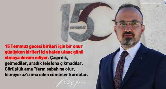 "Bu sınavı herkes aynı derecede vermedi"Bu sınavı herkesin aynı derecede vermediğine dikkati çeken Turan, "15 Temmuz gecesi birileri için bir onur günüyken birileri için halen utanç günü olmaya devam ediyor. Çağırdık, gelmediler, aradık telefona çıkmadılar. Görüştük ama 'Yarın sabah ne olur, bilmiyoruz'u ima eden cümleler kurdular." diye konuştu.