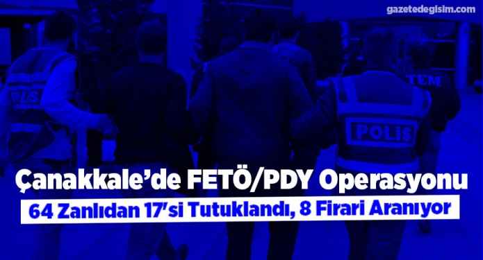 Çanakkale de, Fetullahçı Terör Örgütü/Paralel Devlet Yapılanması na (FETÖ/PDY) yönelik operasyonda gözaltına alınan 64 zanlıdan 17 si tutuklandı.