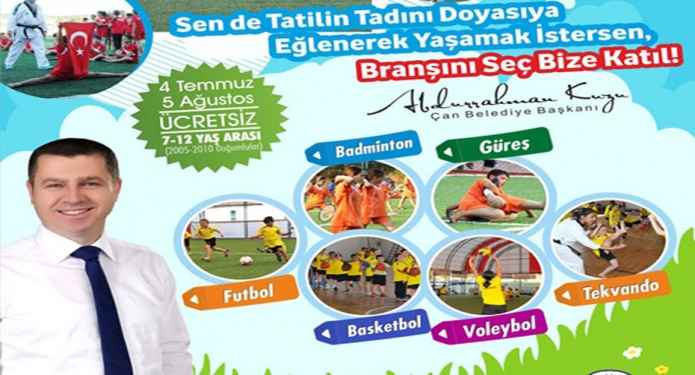 Çan Belediyesi tarafından her yıl düzenlenen ücretsiz yaz spor okullarının bu yıl dokuzuncusu gerçekleştirilecek. 7-12 Yaş arasındaki çocukların kabul edildiği futbol, basketbol, voleybol, badminton, tekvando ve güreş branşlarında açılan yaz spor okullarına talep yine çok yoğun olacağa benziyor.