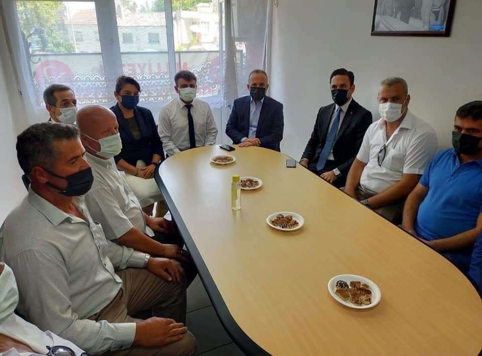 Ziyaret kapsamında Cumhur İttifakı mensupları siyasiler bir süre MHP İlçe Başkanlığı binasında gündeme dair konular üzerine görüş alışverişinde bulundu.