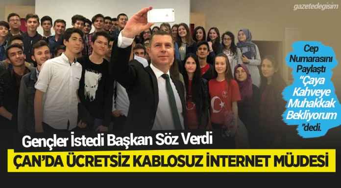 2009 yılında Türkiye’nin en genç Belediye Başkanı olarak göreve başlayan Çan Belediye Başkanı Abdurrahman KUZU, gençliğin enerjisi ve dinamizmi ile 8 yıldan bu yana Çan halkını kaliteli hizmet ile buluşturmaya devam ediyor. Gençlerin fikirlerine verdiği değer ve önemi her çalışmasında gözler önüne seren Çan Belediye Başkanı Abdurrahman KUZU bu kez gençlerle bir araya gelerek samimi söyleşi ve sohbetlerin gerçekleştiği “Gençlerin Gözüyle Geleceğe” adlı bir program tertip etti. 18 Mayıs Perşembe günü Çan Belediyesi Termal Otel’de gerçekleşen programda çok sayıda lise öğrencisi genç, Başkan KUZU’yla birebir tanışma ve sohbet etme imkânı buldu. Bir gencin Söz alarak Çan’da ücretsiz Wifi alanı talebinde bulunmasının üzerine tüm gençlere, prestij caddesinde ücretsiz ve hızlı Wifi alanı yapacağının müjdesini verdi.