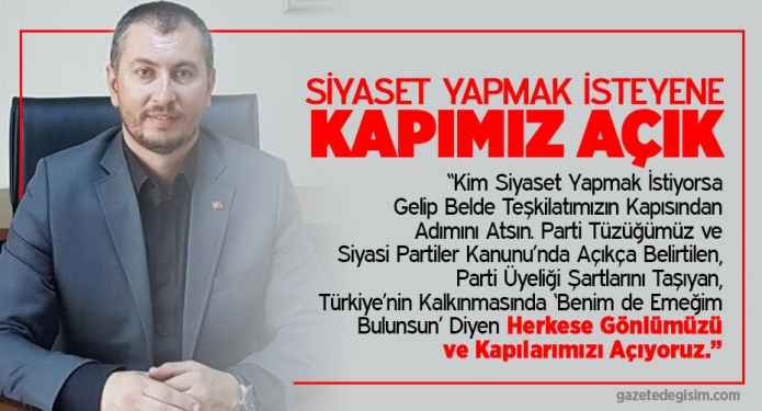 Ak Parti Kepez Belde Teşkilatı olarak diyoruz ki; kim siyaset yapmak istiyorsa gelip Belde Teşkilatımızın kapısından adımını atsın.Parti tüzüğümüz ve Siyasi Partiler Kanunu’nda açıkça belirtilen, parti üyeliği şartlarını taşıyan, Türkiye’nin kalkınmasında ‘benim de emeğim bulunsun’ diyen herkese gönlümüzü ve kapılarımızı açıyoruz.
