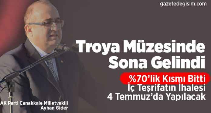 Troya Müze İnşaatimizin %70’lik büyük kısmını tamamladık %30’luk kısmını oluşturan iç donanım teşhir, tanzim ve çevre düzenlemesinin 4 Temmuzda ihalesi yapılacak ve ay sonunda da çalışmalara başlanacak. 28 milyon liralık yaklaşık maliyetin 4 milyon liralık ödeneği hazır. 2018 Yılının Troya Yılı olması münasabetiyle Temmuz-Ağustos gibi Müzenin açılışını yapacağız.